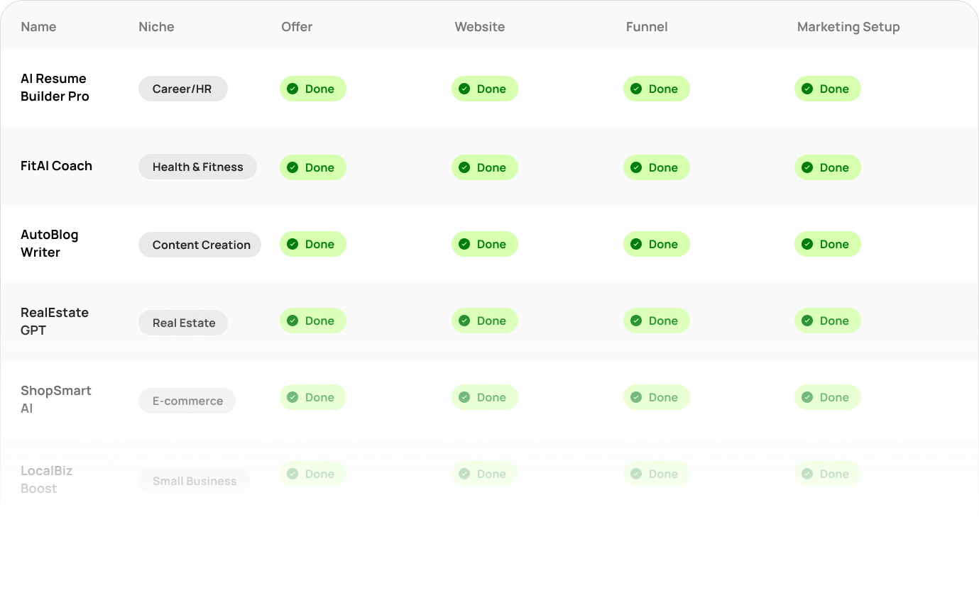 Your AI business helps other businesses implement and profit from AI tools. You earn by charging for services like lead generation, content, automation, PR, and more — all powered by your AI Agents.